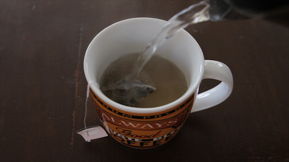 - When the water has come to a boil, pour it in the cup and wait for the tea to brew